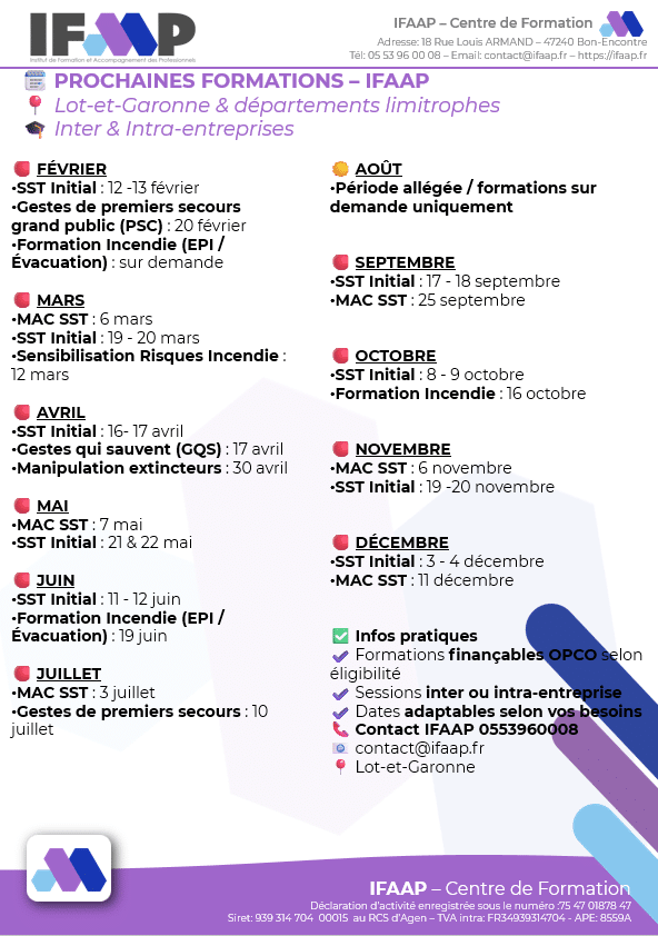C’est dans cet esprit que nous avons ouvert une session de formation Sauveteur Secouriste du Travail (SST) les lundi 16 et mardi 17 février 2026.